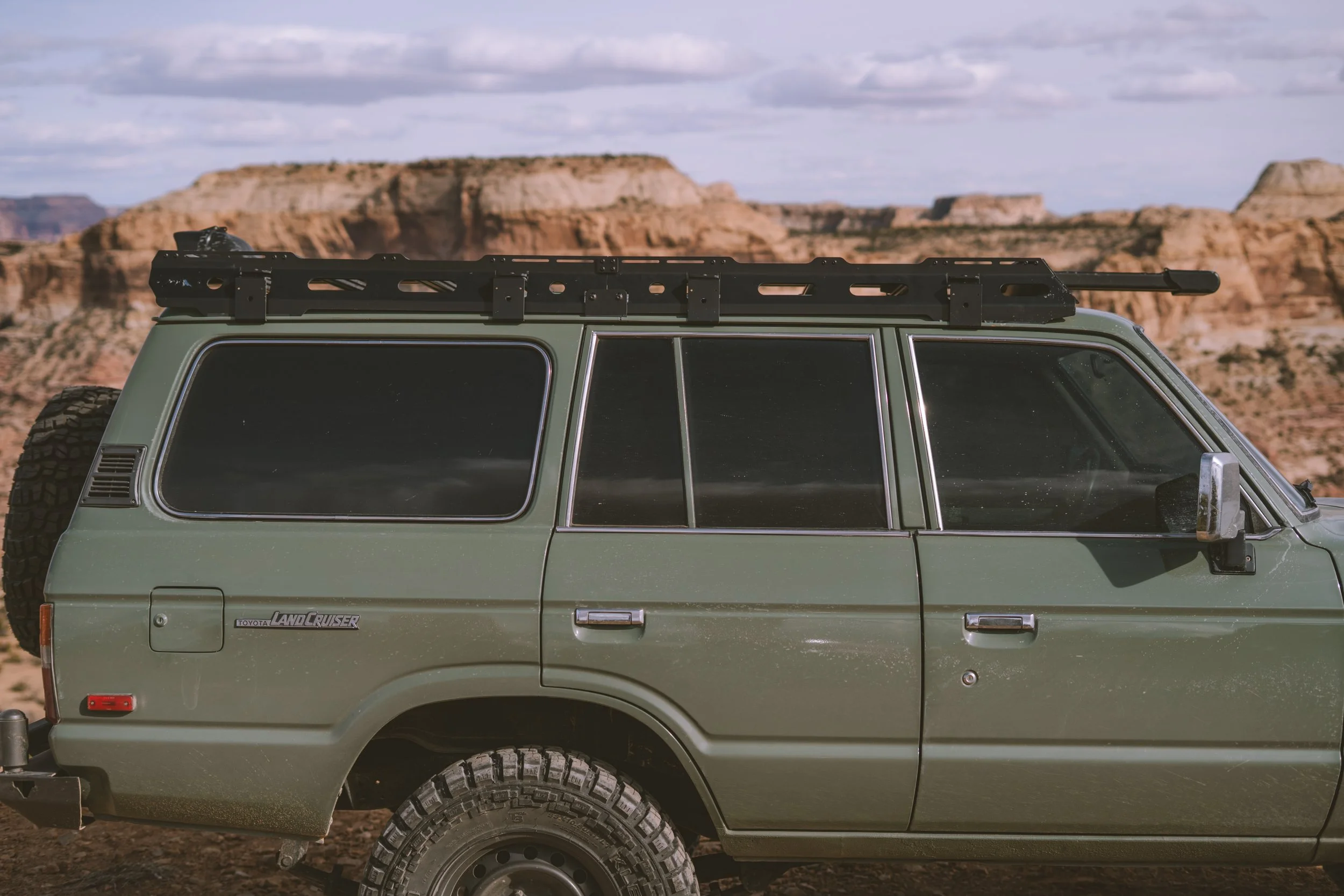 North Cascades Designworks is offering this full coverage roof rack for the coveted 60 series Toyota Landcruiser. This sturdy rack can serve all your roof rack needs with a sleek design that is both aesthetically pleasing as well as fully functional. Integrated features such as grab handles and mounting points for additional accessories. Everything you need to install the rack is included.